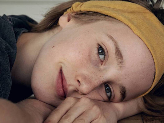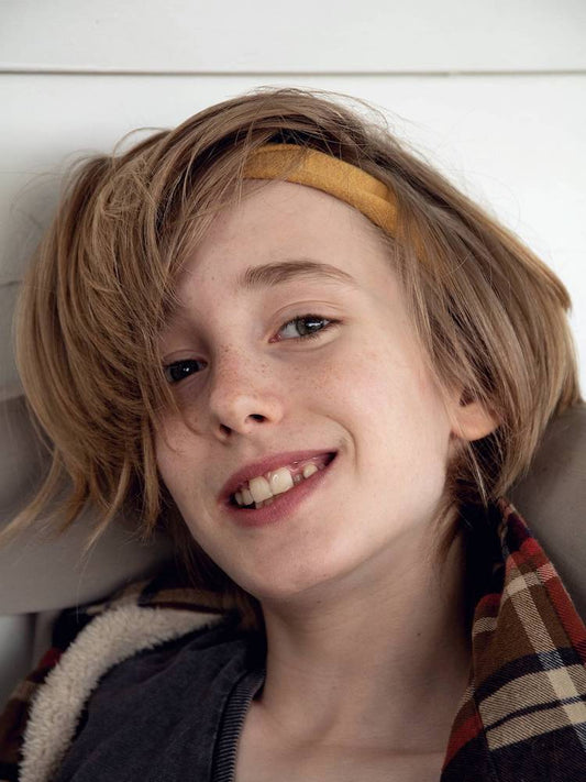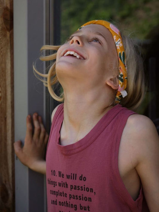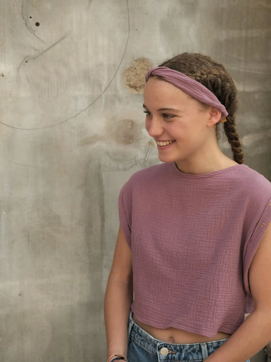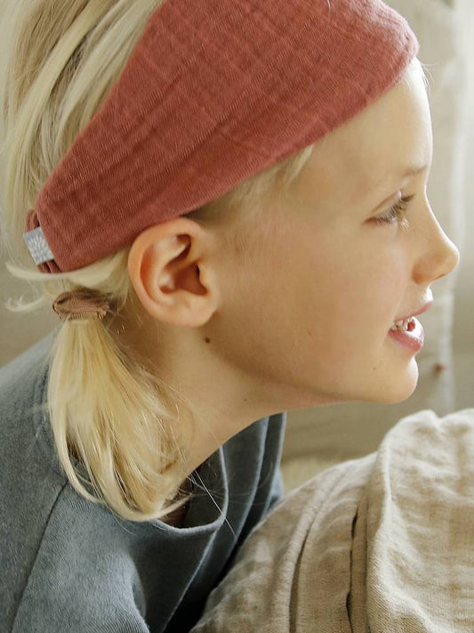 Schmales Haarband aus Bio-Musselin, Altrosa mit Handgefärbtem Webband