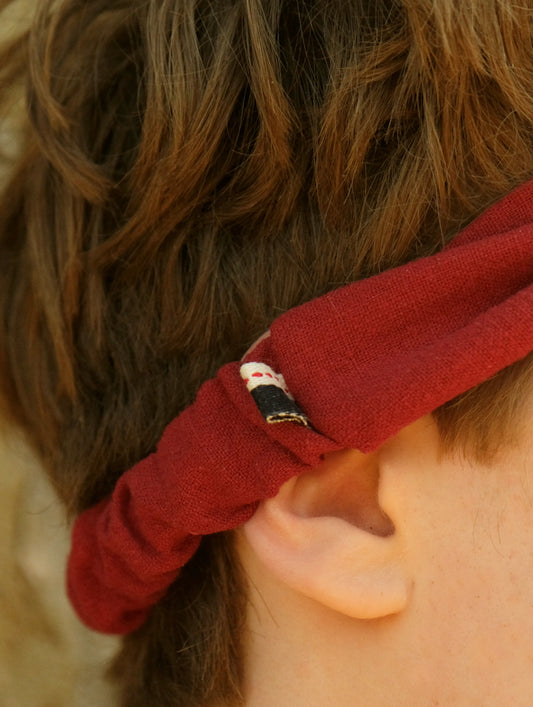 Schmales Leinen-Haarband, Stonewashed, Rot