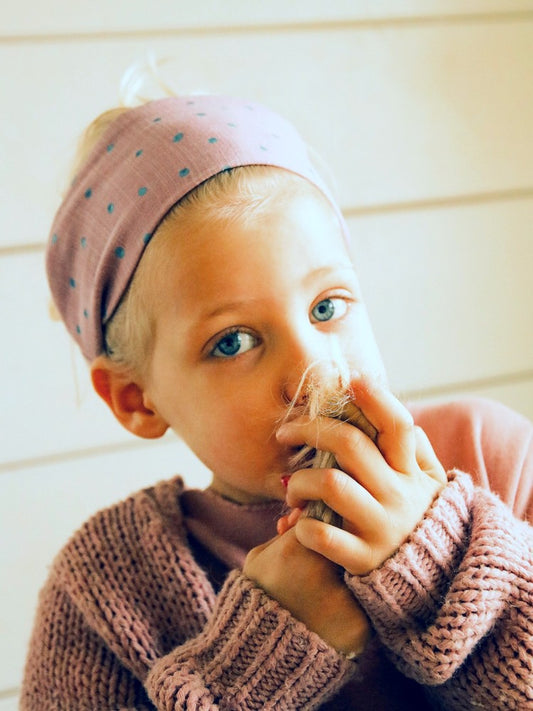Gazé-Haarband, Warmrosa mit Handgemalten Grauen Punkten