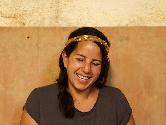 Schmales Leinen-Haarband, Stonewashed, Gelb