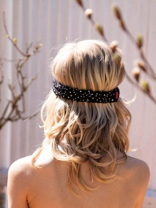 Schmales Jersey-Haarband, Schwarz mit Weißen Tupfen