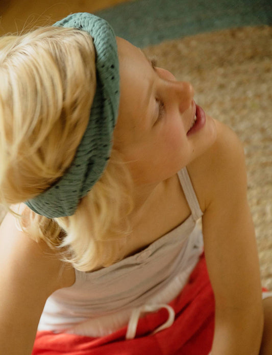 Schmales Musselin-Haarband, Mint mit Schwarzen Tupfen