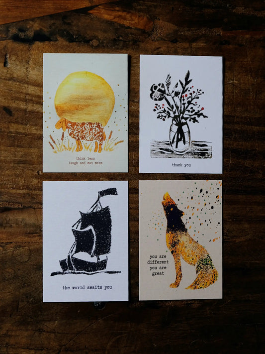 HANDGEZEICHNETE, GESTEMPELTE MOTIVE MIT BESONDEREN BOTSCHAFTEN..