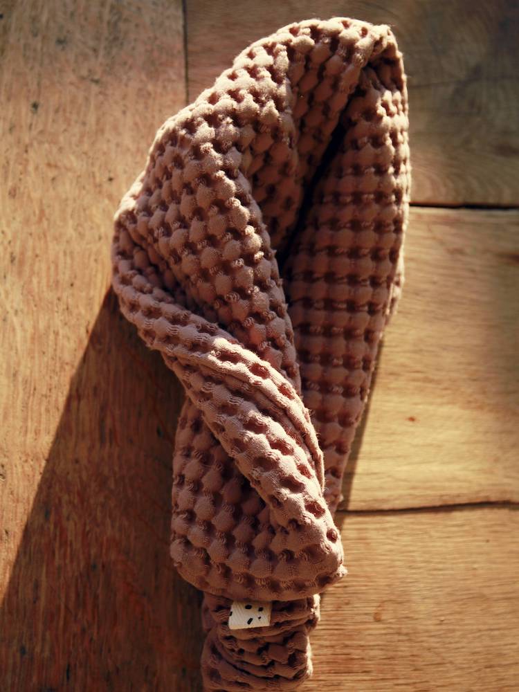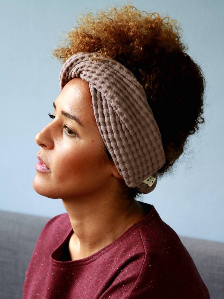 This extra wide hair band catches the eye with its special waffle structure! The color is also great: a beautiful, dusty lilac tone. Due to the width and the twisted design, it sits very nicely on the head. It is so wide that it fits in the colder seasons: it covers the ears and can therefore also be worn as a replacement for a hat.