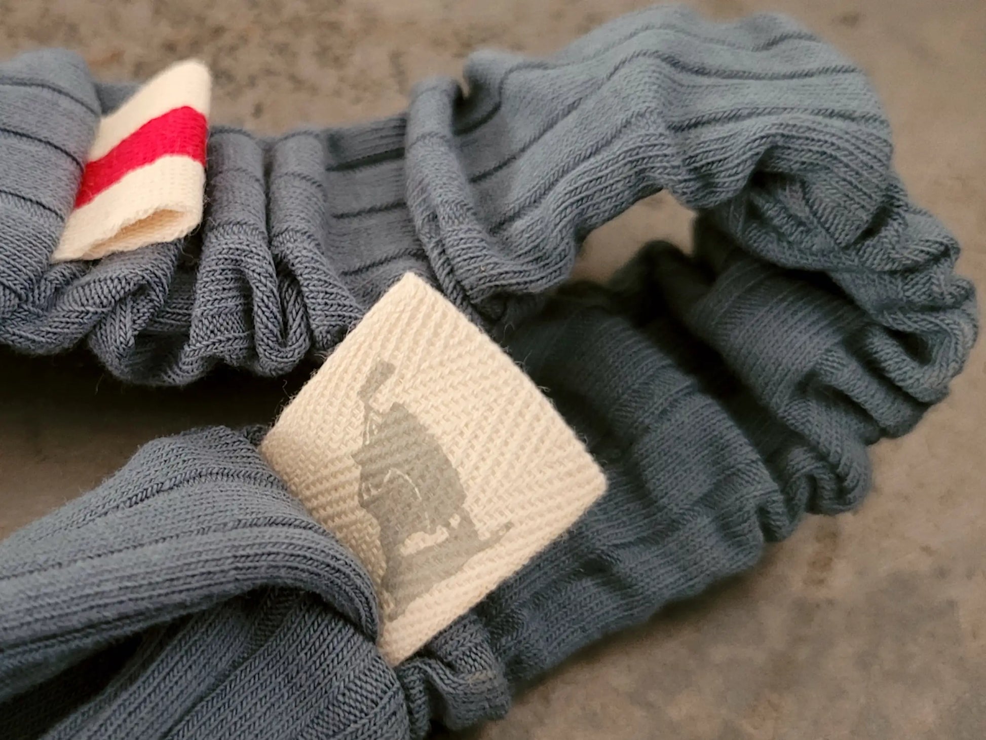 Jogging on the beach, enjoying the end of the day in a street café - whatever you plan to do, this hair band will keep your hair safe and cool! The headband consists of a very beautiful blue, coarsely ribbed cotton jersey. The eye-catcher is our cream-white woven ribbon with a red stripe in the middle.