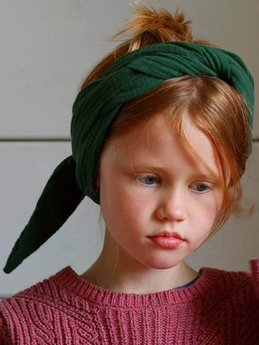 Brede hoofddoek van biologische mousseline, oceaangroen met handgeschilderde goudkoperen stippen