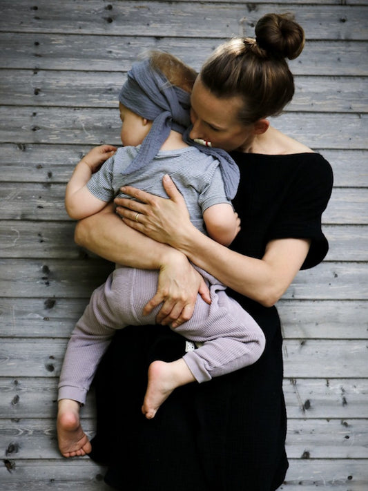 Hoofddoek van biologische mousseline, Scandinavisch rood met handgeschilderd geweven lint